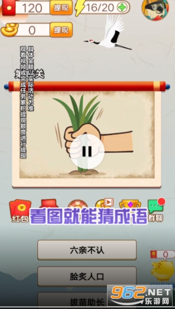 为大家分享下一关在此游戏赚钱版,十分好玩的一款看图猜成语游戏,玩家需要根据图片给出的提示,猜出正确的成语,猜出的成语越多能领的红包也就越多,支持直接登录或提现,感兴趣就不要错过!