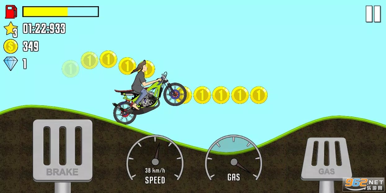 设置您的速度并升级发动机,以便拖动马达更快,并且不要忘记还有您必须注意的燃料,以便您的摩托车不会耗尽燃料。
