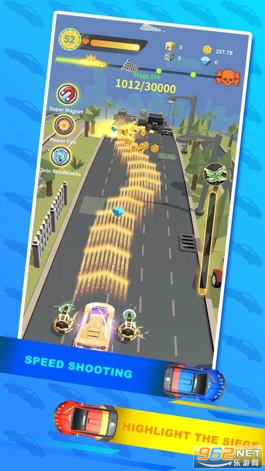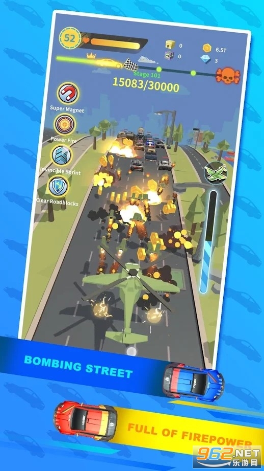 一款爽快的射击驾驶闯关游戏,游戏中玩家将不断的进行攻击来消灭挡在你面前的敌人,游戏的操作简单容易上手,通过各种道具来实现炫酷的战斗,游戏的操作简单容易上手,推荐给喜欢休闲游戏的玩家。