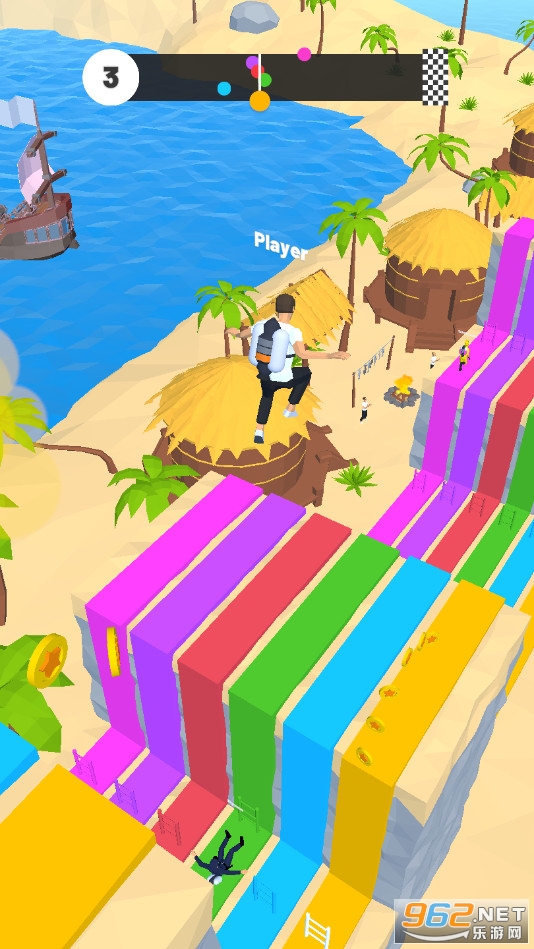 欢迎来到Ladder.io,一个有趣的跑步游戏,在这个游戏中,你可以与其他人竞争,在赛道的尽头成为第一名。当你到达终点时,你可以借助喷气背包的力量跳得更远。您将根据您放置梯子的程度收集喷气背包燃油。在没有梯子的情况下,你可以在平台上跳下去。