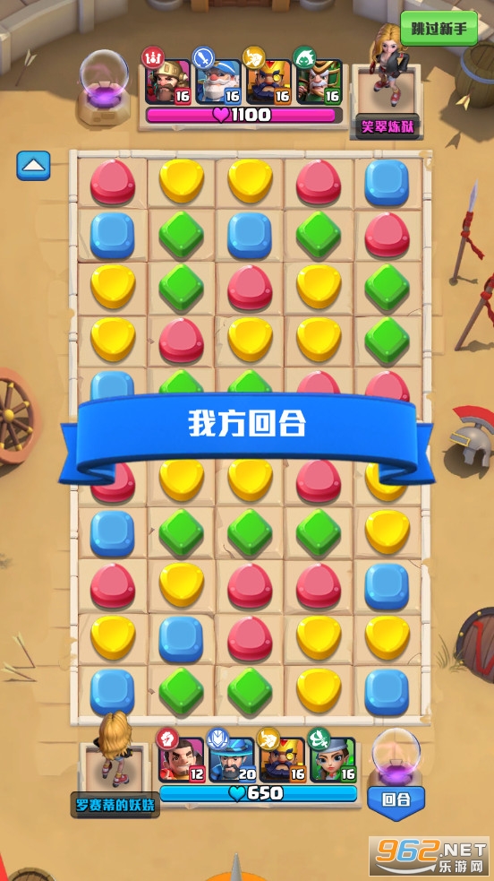 一款有趣的休闲三消乱斗游戏,玩家将进行激烈的pvp对战,你可以选择不同的将领来进行战斗,每个角色都有着不同的能力,在三分钟一局的战斗中击败你的敌人,通过策略和三消,推荐给喜欢休闲游戏的玩家。