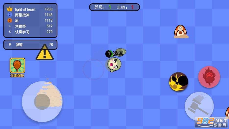 控制摇杆操控锤子,灵活地走位,风骚地将对手推出地图,使自己不断变强变大。