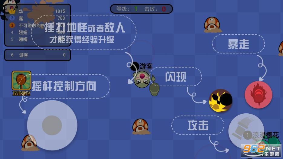 粉碎地图上蘑菇和红头怪可以增加自己的能量用来粉碎更大的东西,争取让你的锤子拥有强悍的力量!