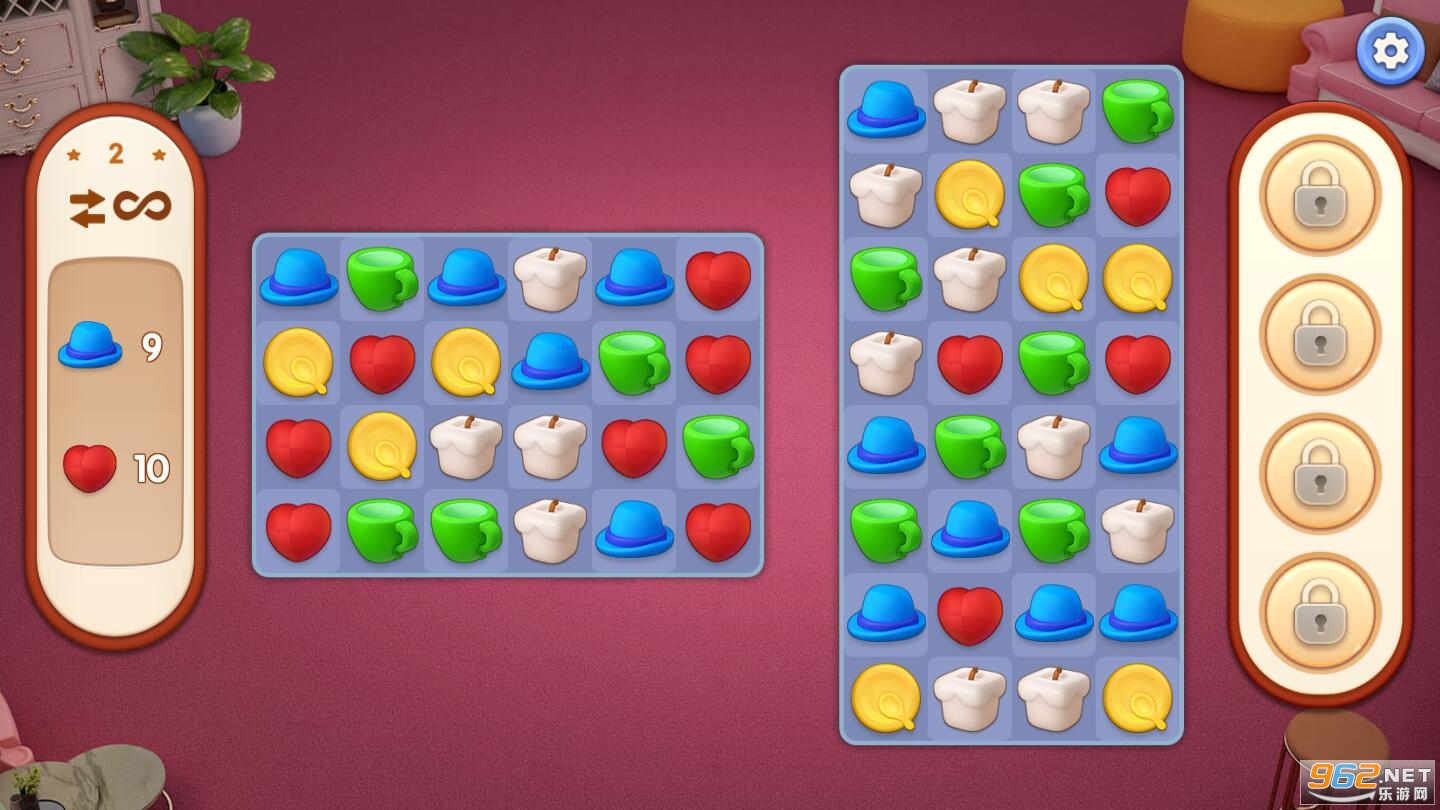 1、简洁美观的游戏界面,海量精心设计的游戏关卡等你来玩,趣味三消玩法;