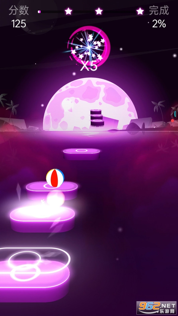 游戏类似于音乐节奏大师,通过多次尝试寻找自己的手感,保持极致手感就能随心所欲的闯关,每一个关卡中的背景以及特效并不都是一成不变的,而是会随着闯关的进行不断变化。