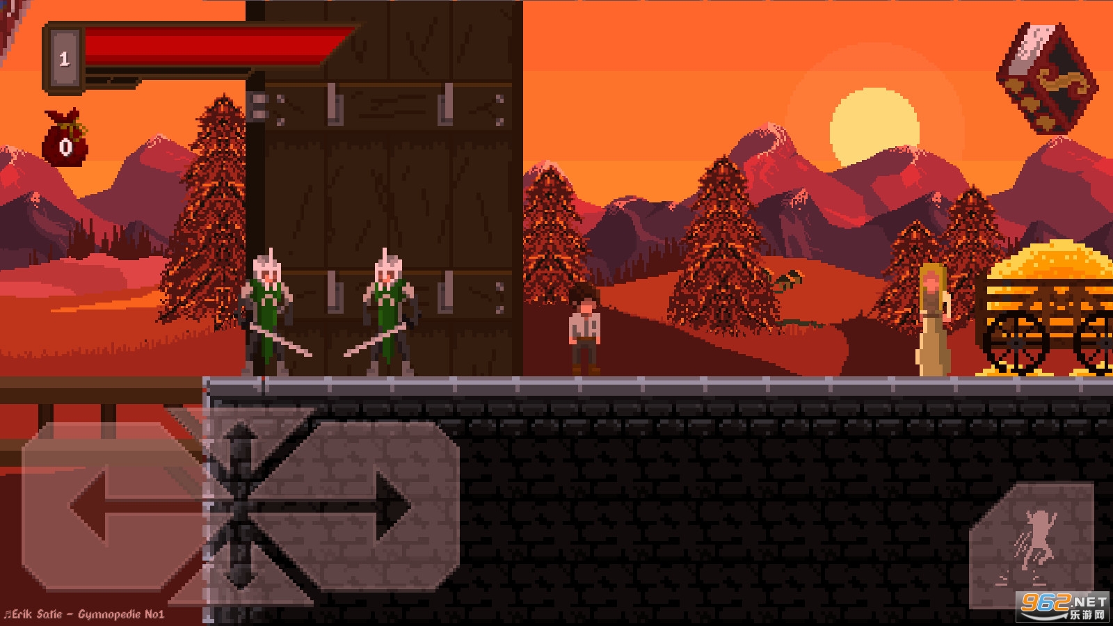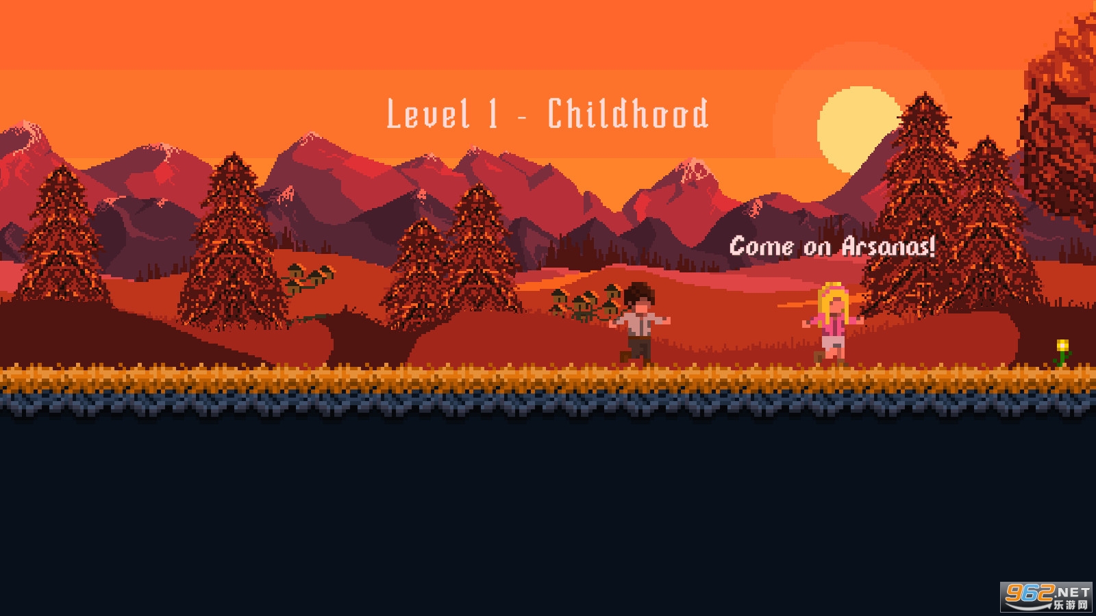 这是一款带有复古像素美术图像的动作平台游戏。