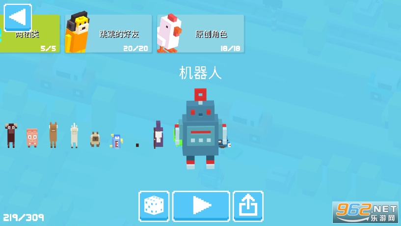 玩家要控制呆萌的方块动物或者人物,在永无止境的马路、铁路、河流间穿梭,看自己在被压扁或者撞飞前最多可以前进多远。
