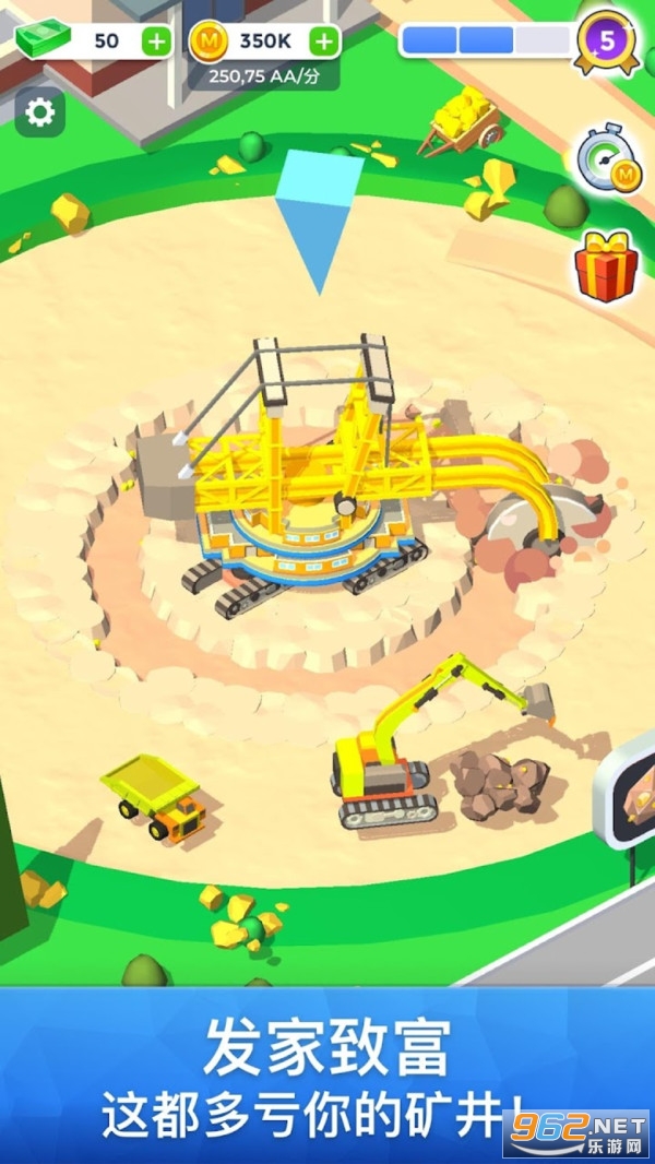 用自己的矿业帝国赚个盆满钵满,下场“钞票雨”!成为下一个万亿富翁,作为矿井大亨,统治整个行业!畅玩多样的游戏内容,并不断地探索 在整个游戏过程中,你将见证游戏环境随着新建筑、新载具、新器械的加入而发生明显的进化,这些新元素都将助你实现把公司打造成最成功矿业公司的目标!