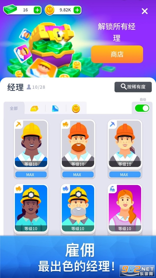 我们不仅能解锁更多的挖掘机和施工工具,还可以雇佣更多出色的包工头经理,不断完善我们的施工团队,让这支团队的工作效率更高,很不错的经营放置游戏,无聊的时候可以来玩一玩。