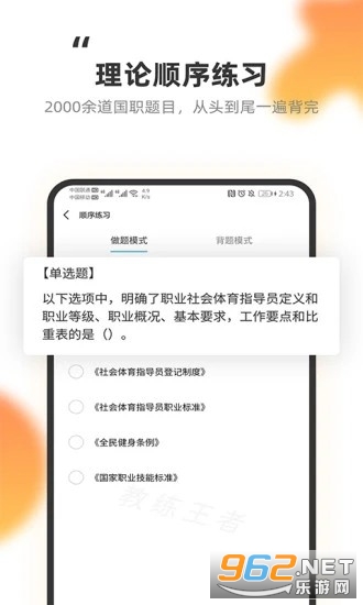 晋级上王者,健身教练专属。10000+海量题库,更是全国技能大赛,刷题神器。