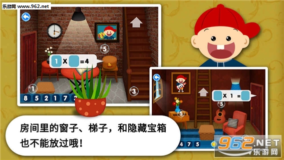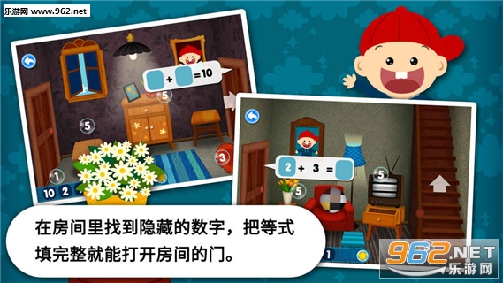 -每栋房子内还包含多个房间,小朋友需要在房间里找到隐藏的数字,把加减乘除的等式填完整才能打开房间之间的通道。通过解锁最终隐藏的房间,赢取勋章。