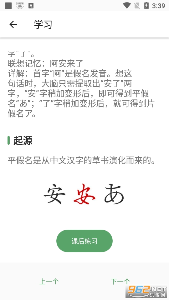 非常实用的一款专门为对日语感兴趣的朋友们打造的软件,用户能够通过软件对平假名片假名进行学习,还能够跟着笔画进行书写,实用性强,快来下载吧!