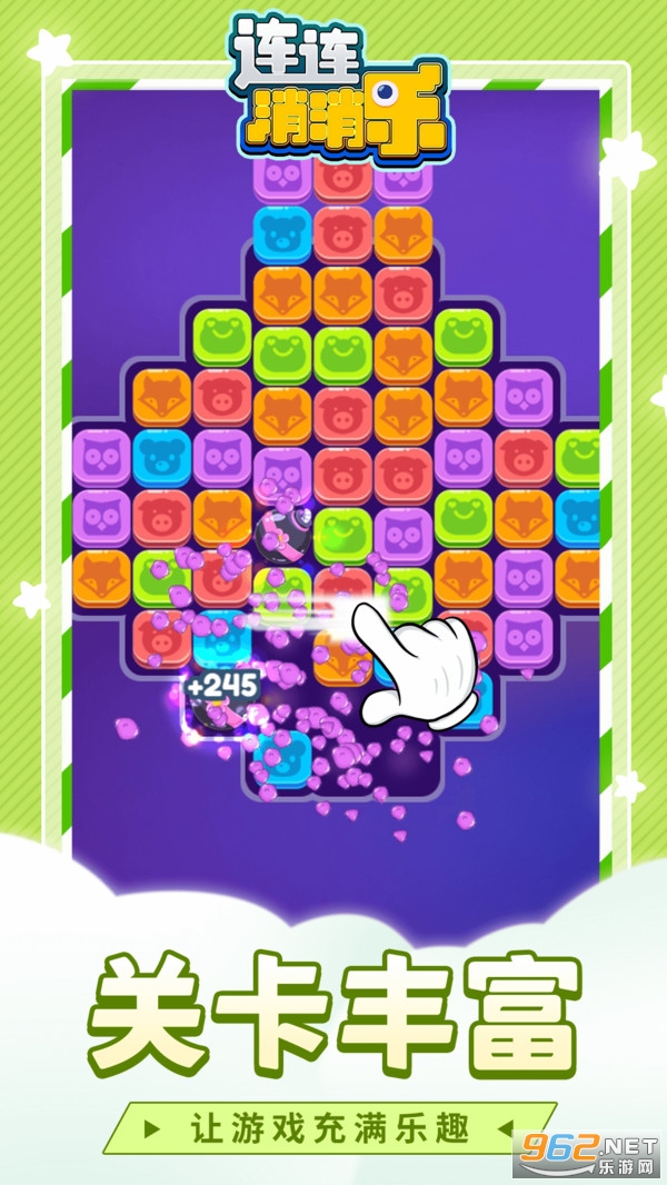 连连消消乐是一款操作简单,玩法新鲜有趣的益智类解谜游戏。如果你喜欢解谜消除游戏,此款游戏不容错过哦!如果你对休闲益智类型的游戏十分感兴趣,那么这款连连消消乐可以说是非常适合你的一款游戏。