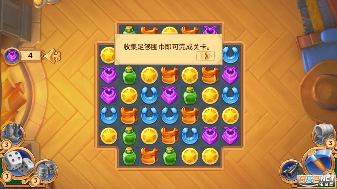 《西部荒原的宝石》是一款美式卡通风格的西部题材消除游戏,玩家将来到那个时代中帮助柯林斯镇进行重建,同时完成居民的各种委托任务,游戏的操作简单容易上手,还有着爽快的消除关卡等你挑战,赶快下载体验吧!