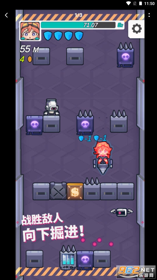 盖亚突破中玩家将扮演一名探险家,进入深不见底的盖亚遗迹。驾驶华丽的机械钻头,与古代机械战斗,从中获得力量与财富。