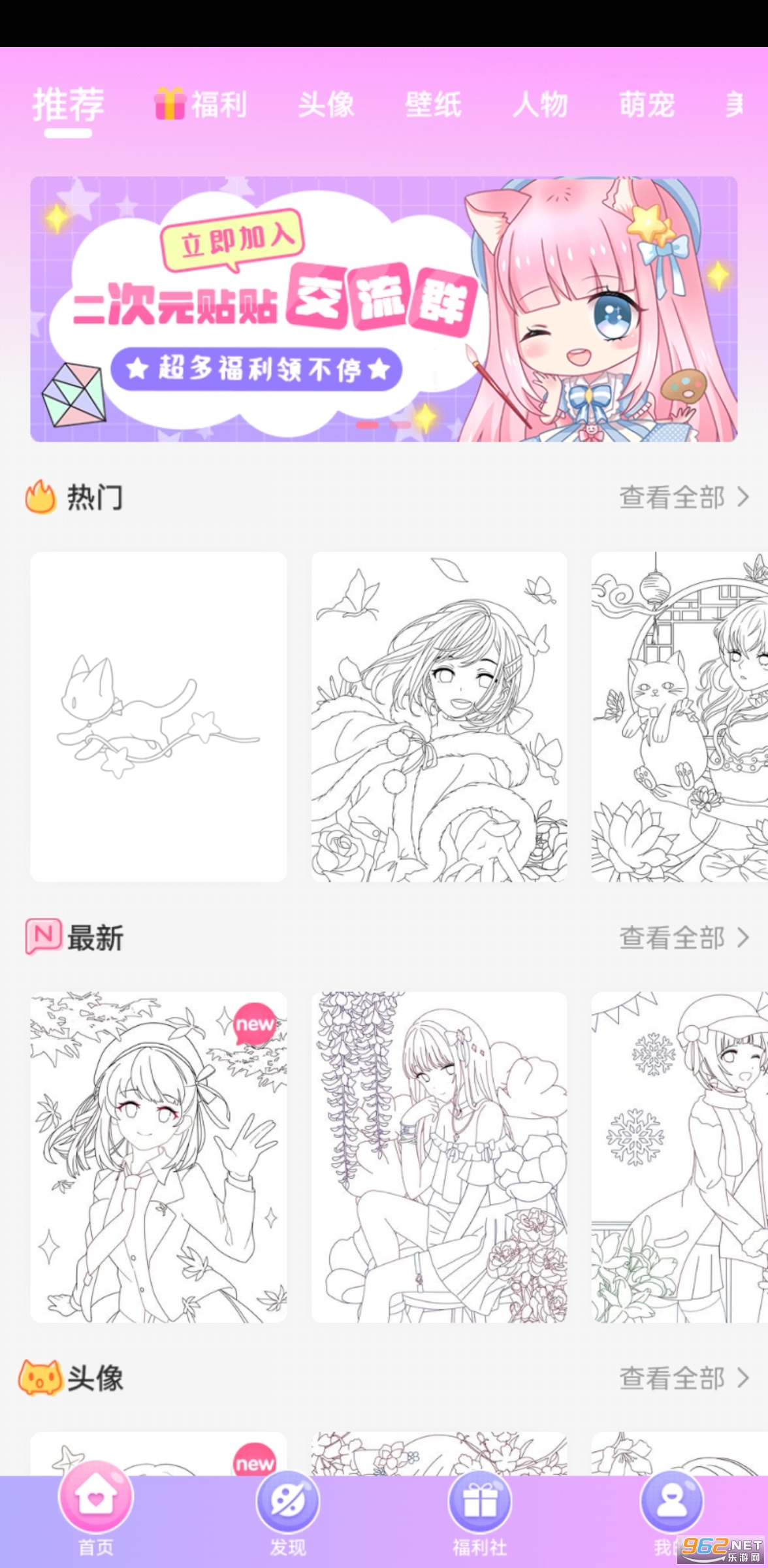 这个集头像、贴纸、壁纸于一体,拥有人物、食物、宠物等多类型素材的二次元同好汇集地,等你拥抱次元美好,轻松,分享美好。