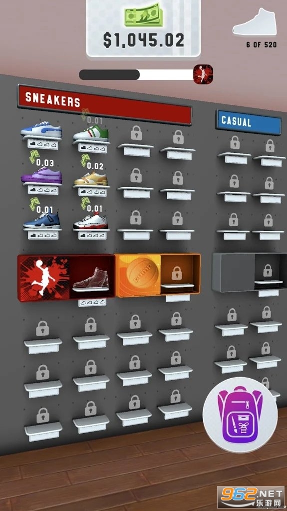 3、前期我们需要通过清理肮脏的鞋子来获得金币,等我们有能力购买鞋子进行收藏时游戏才真正的开始。