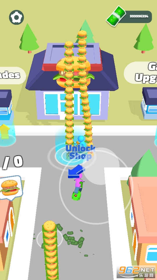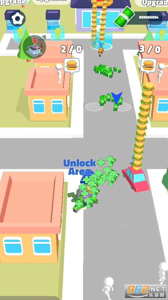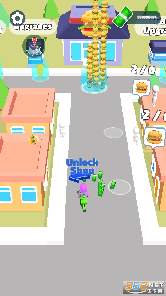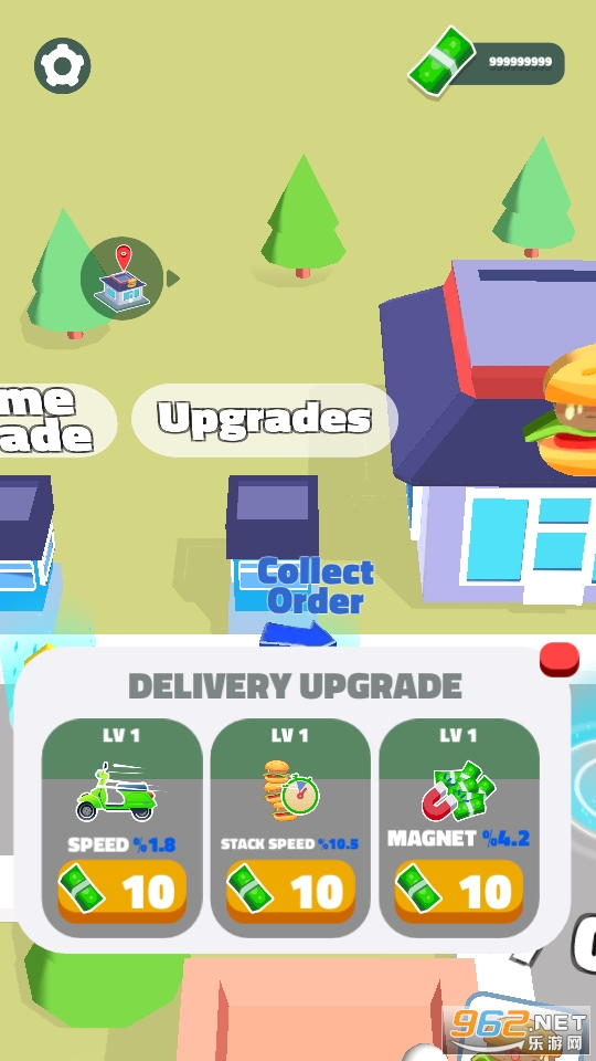 升级您的送货团伙并尽快送餐。堆叠汉堡包、升级摩托车、雇用新的快递员等等……