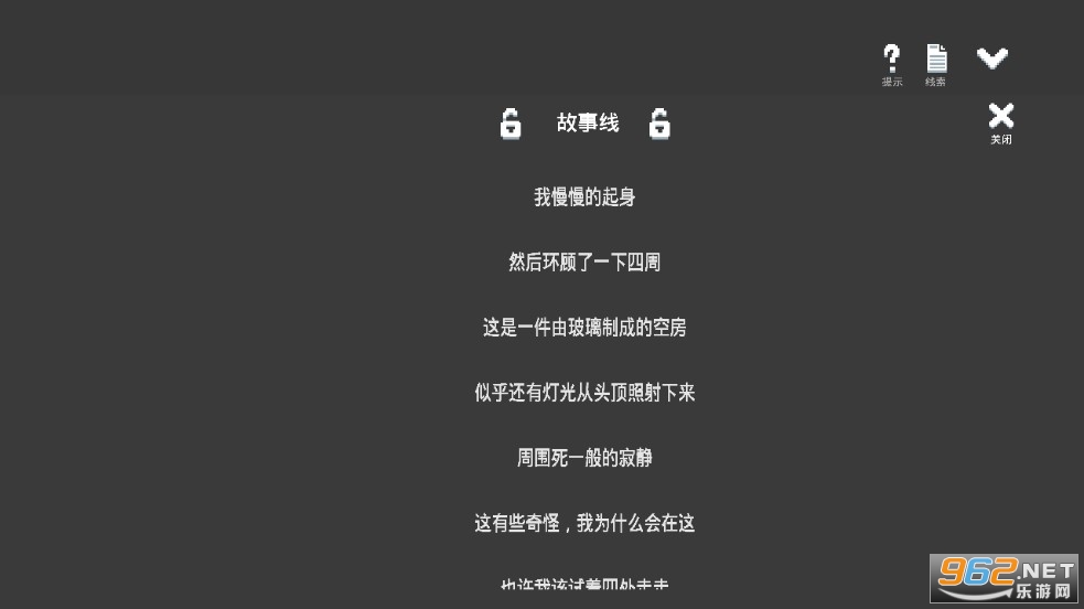 黑白像素画风的剧情向解密逃脱游戏,你醒来之后发现自己被困在密封的水箱之中,现在需要想办法逃离这里,去寻找重要的线索吧,找到这些线索才能得到答案,每一个关卡都非常烧脑。