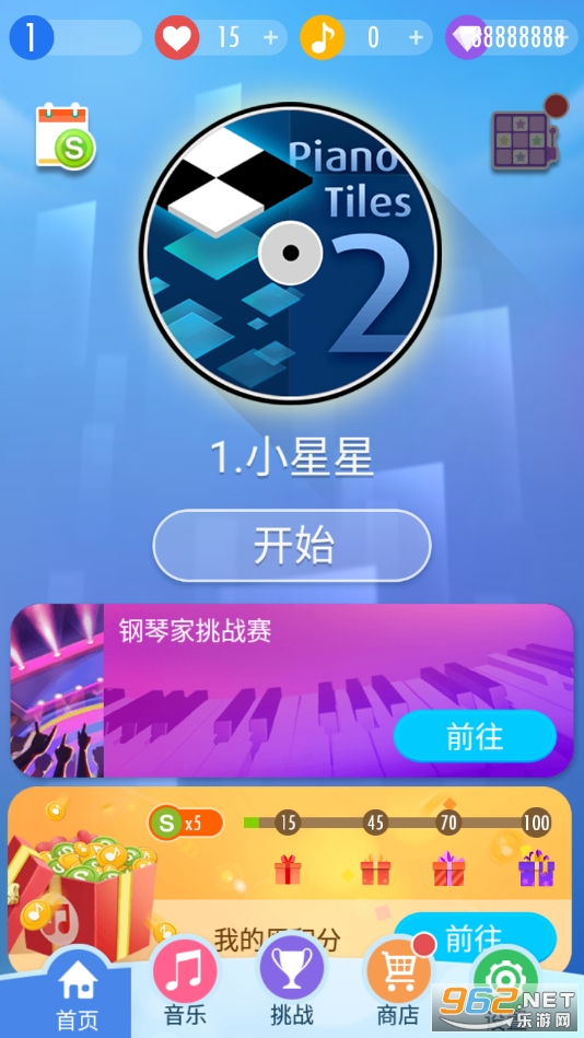 世界曲库大全 游戏采用了主角等级提升来解锁歌曲的方式,我们通过不断的弹奏曲子来获得分数与经验,当等级提升的时候,也会相应的解锁更多更强大的歌曲,挑战后面的歌曲也会获得更多的奖励。游戏为玩家们提供了丰富的歌曲库,让玩家们能在优美动听的音乐中不断的锻炼自己的操作水平和反应能力。 增加玩家互动乐趣 相比前作而言,本作增加了更多的玩家互动环节,我们可以通过升级来解锁新手、高手、大师等赛事,不同的赛事所需要的反应能力也不同,并且这些赛事都不是挑战某一个定速的歌曲,而是挑战玩家的手速,玩家的手速有多快,黑键就会出现多快,所以各位菜鸟想要变为手速达人,这可是一个不错的选择。