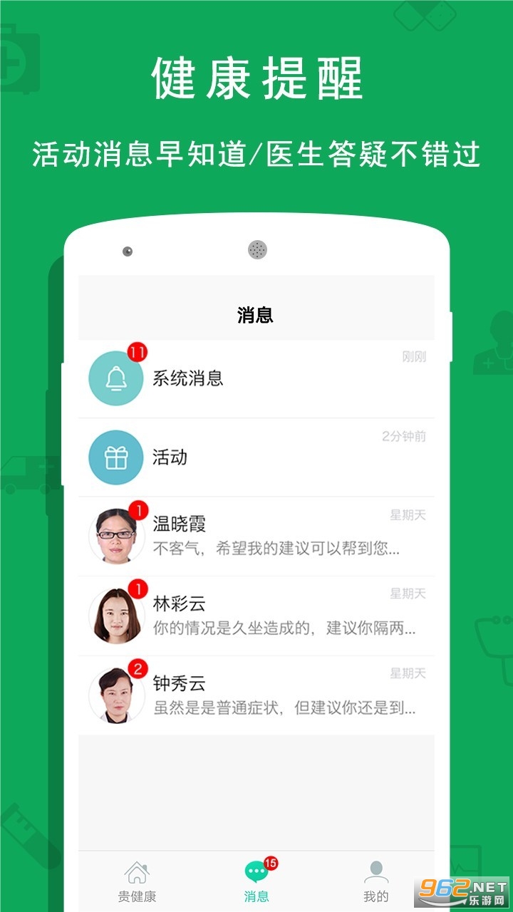 丰富的健康常识、保健养生、饮食、运动指导,学习健康知识,提早预防健康隐患。