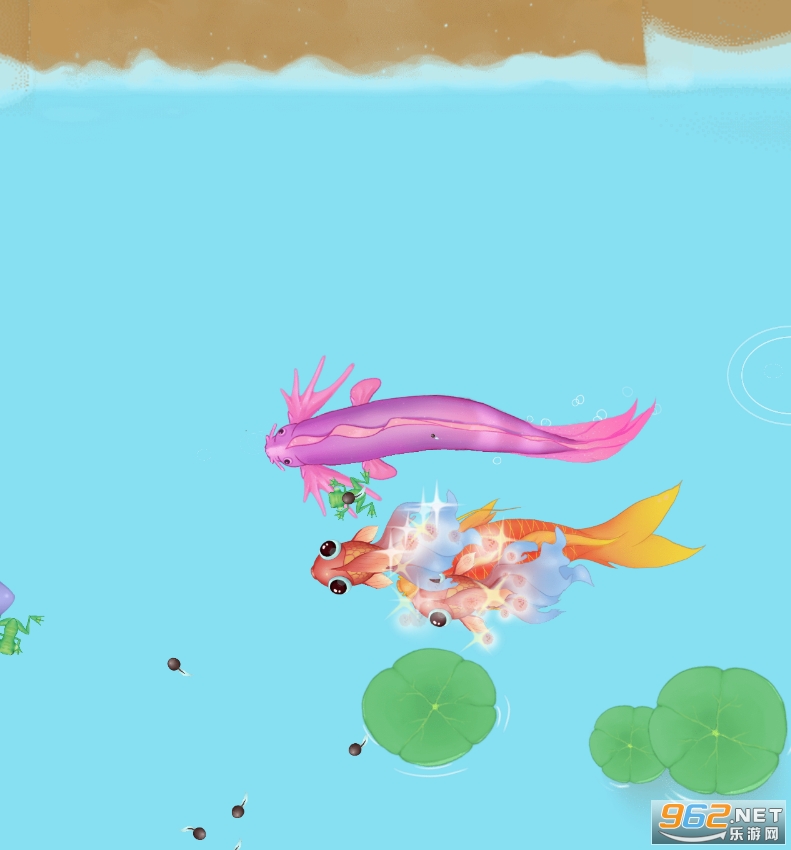 3、身边多了一颗小蝌蚪,当两只小青蛙合成后,就会变成小海龟,以此类推。
