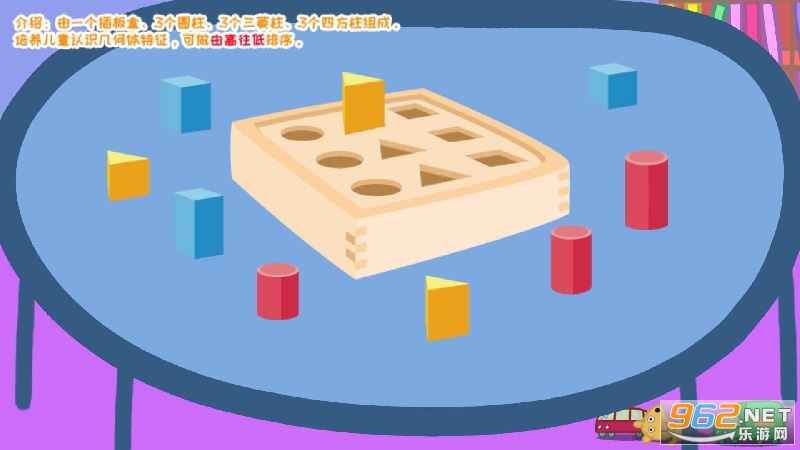 一系列的教具,能够培养孩子对物体形状、大小、高低、颜色等的认知能力。