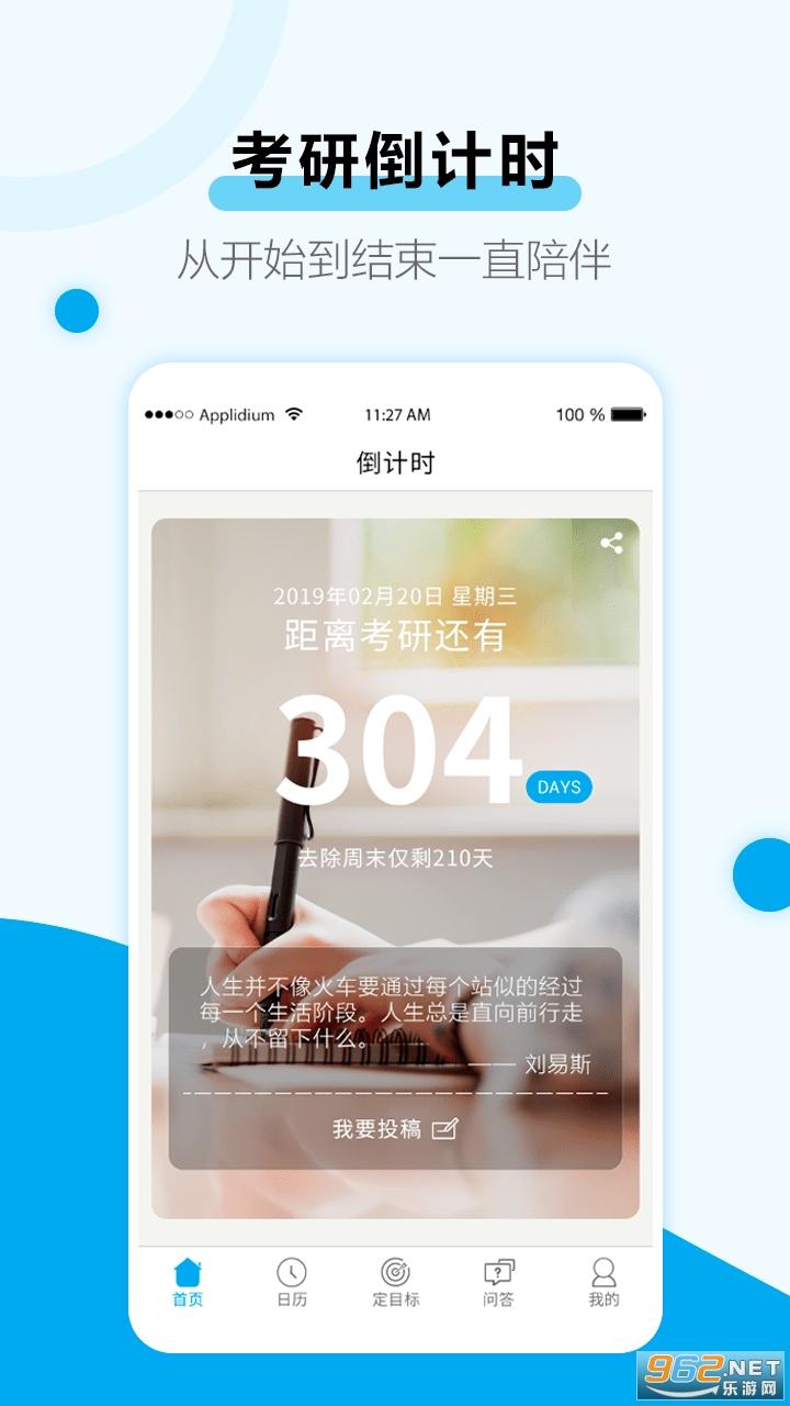 2026考研倒计时励志app手机版:是一款为考研学子提供时间提醒的手机软件,每天定时提醒考生考试时间,配合不同的励志语录推送,帮助考研的用户加油打气哦!