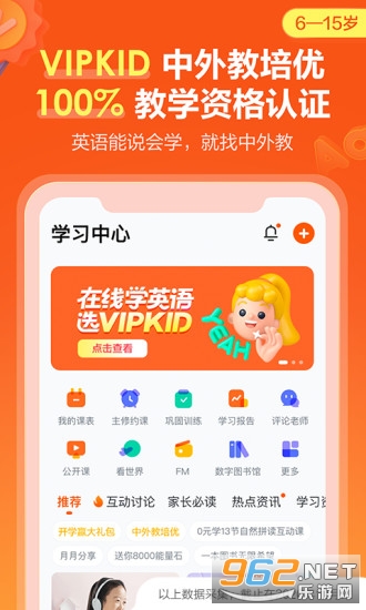 《VIPKID英语》是一款非常实用的学习软件,专门针对5-12岁的小孩子,北美外教以一对一的方式是视频授课,采用美国小学教材,致力于让中国的小学生学到最纯正的英语,生动有趣的课堂授课方式,让孩子们寓教于乐,在快乐中学习,激发他们的学习兴趣。