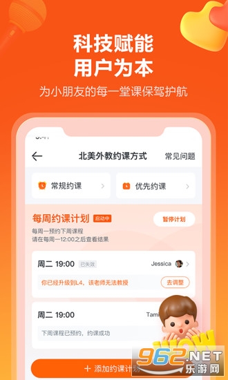 随时随地约课上课,课堂情景随时查看:打破定时上课限制,家长和孩子拥有充分自主权,自由选择上课时间、地点和外教。通过课程回放录像,随时查看孩子上课情况。手机就可查阅外教反馈和学习报告,轻松了解孩子学习进度,全程测评学习效果。