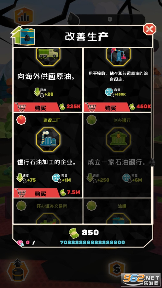 趣味的石油公司经营游戏,玩家将解锁设备去挖掘石油,进行运输、交易,赚取金钱,然后升级设备,扩建自己的工厂,赚它一个亿,成为石油大亨,喜欢的朋友可以下载试试。