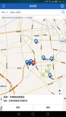 2.添加了按区域搜索充电站和版本更新的功能