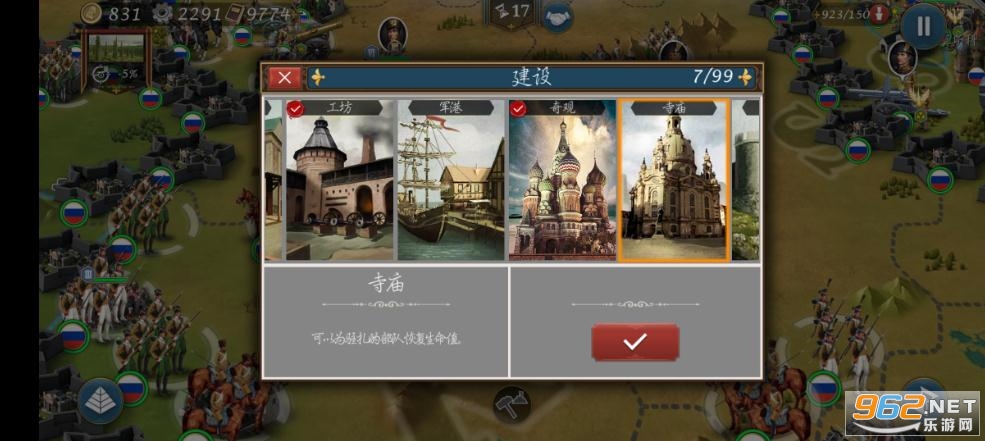 2、丰富的章节和帝王霸业争夺,率领千军万马展开世纪战争,训练你的军团;