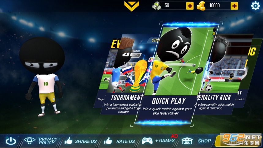1、游戏的玩法就像是一般的足球游戏一样,不过主角换成了我们熟悉的火柴人,一样流畅的动作,还能做出各种过人技巧,操控他们将球射进对方球门;