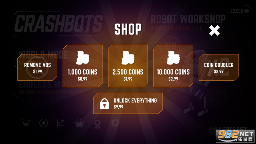 crashbots目前具有5种不同的机器人。机器人可以通过收集所有部件解锁。这些部分隐藏在级别中,一些用于完成任务。你也可以升级你的机器人来改进他们的武器系统,装甲和电池寿命。