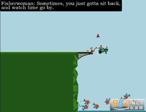我要跳河是一种强调难度和独特水平设计的平台。每一关,玩家都被要求从桥上跳下来,但在任何其他意义上死亡,都是失败。你可能会遇到需要物品的角色,有条理的拼图水平,极度困难的平台,测试你反应时间的严格水平,甚至是老板。从桥上跳下来是一个精心设计的世界,避免过度使用先前引入的精灵和角色。每一个层次都是独一无二的,令人难忘。