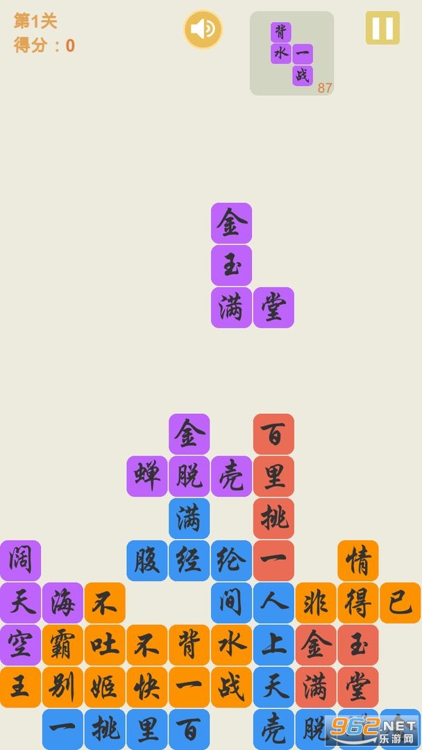 经典俄罗斯方块中融入成语单词,通过有趣的游戏获取大量成语,同时也会出现成语典故。让成语学习变得有趣,让游戏变成获取知识的娱乐,感兴趣的话赶快来下载挑战吧。