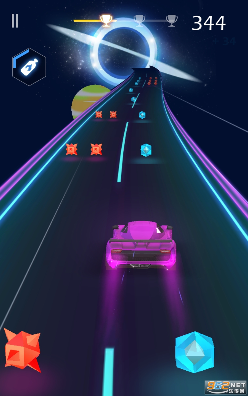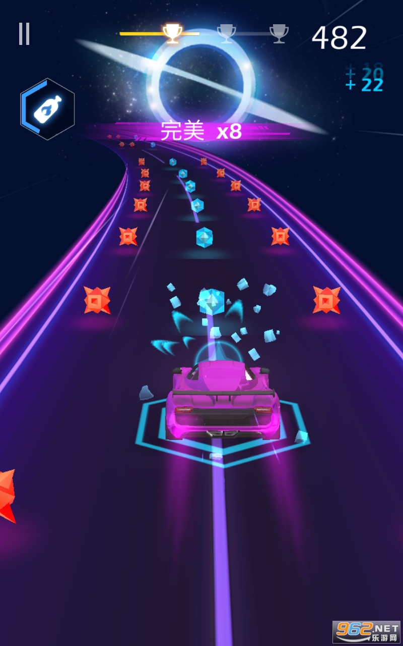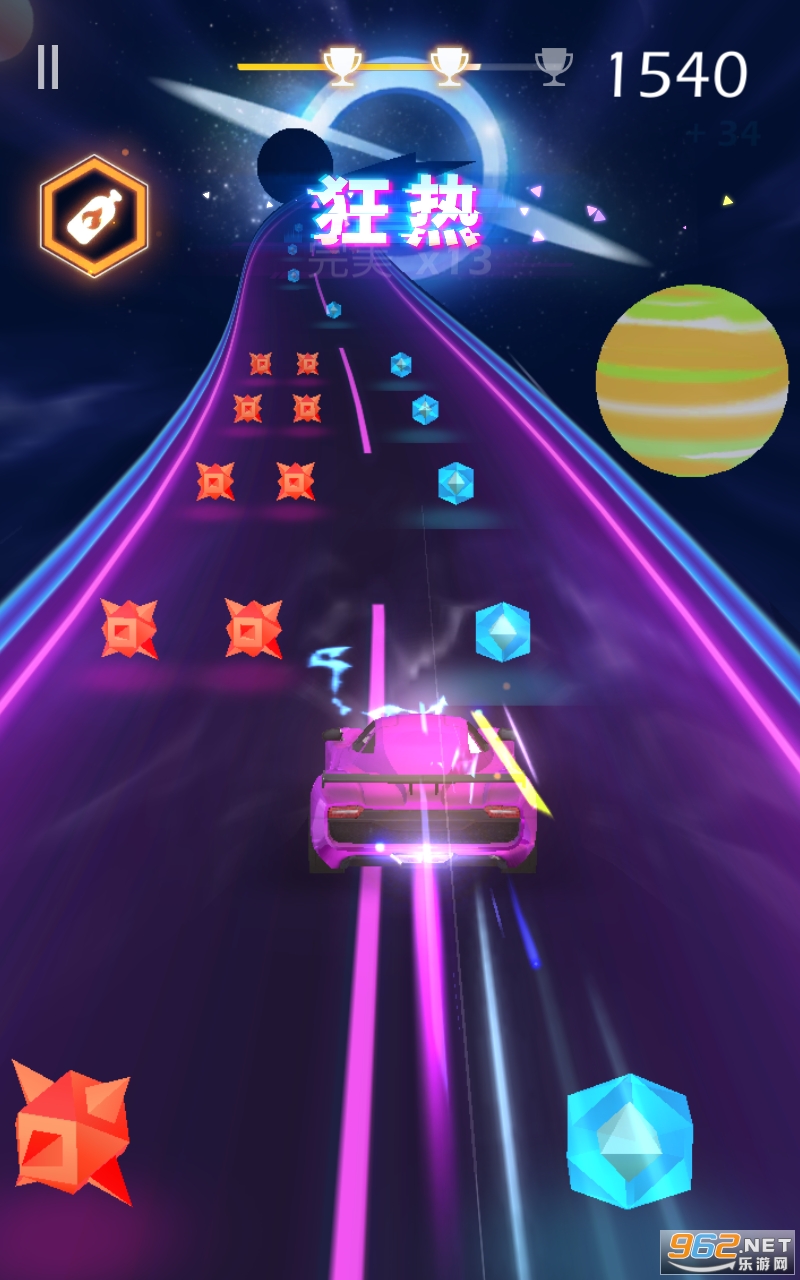 1.驾驶自己的赛车在游戏赛道上行驶,通过轻松的点击去完成形形色色的音乐游戏挑战;