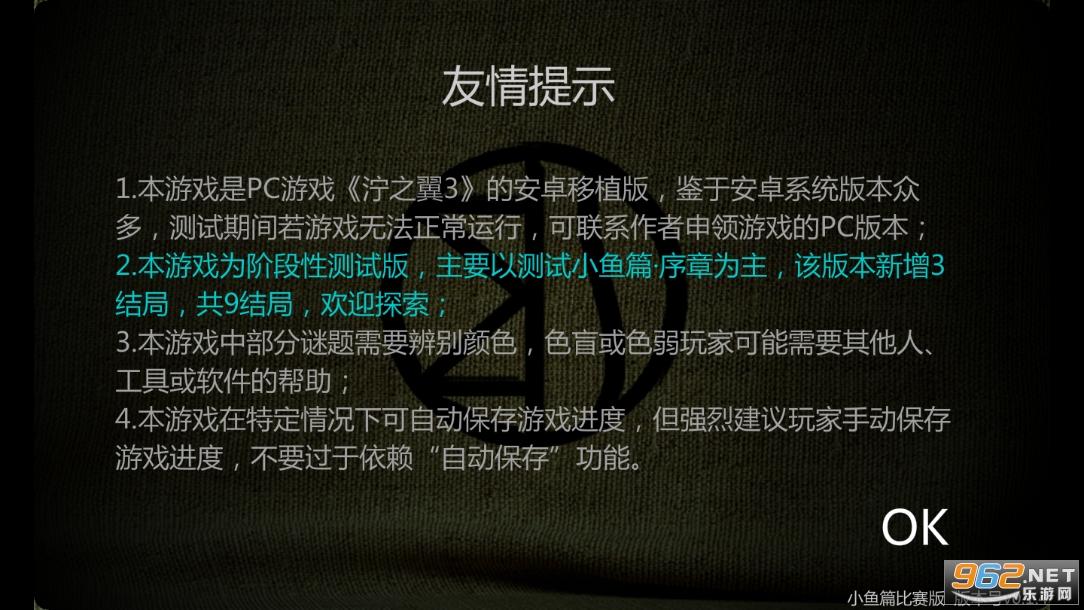 《泞之翼3:比赛版(泞之翼3:6个人的6次元密室)》是由经典ip改编而来的一款解谜游戏,采用了二次元的画风和场景设计,里面有着丰富的谜题和线索,精彩的剧情,玩家将在一个颇为沉重的故事中,在精美简约的画风,复古的场景中,通过解谜的形式,探索家庭,校园,社会,战争等反应出来的人性问题,感兴趣就来试试!