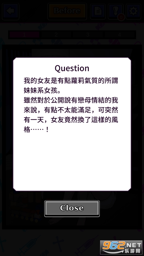 比较有意思的解谜推理游戏,剧情十分的奇葩,玩家将在不同的场合和情境中,根据剧情的描述,寻找女友变成现在这个样子的原因,操作简单,玩起来会感觉有点烧脑,不会的话可以看提示!