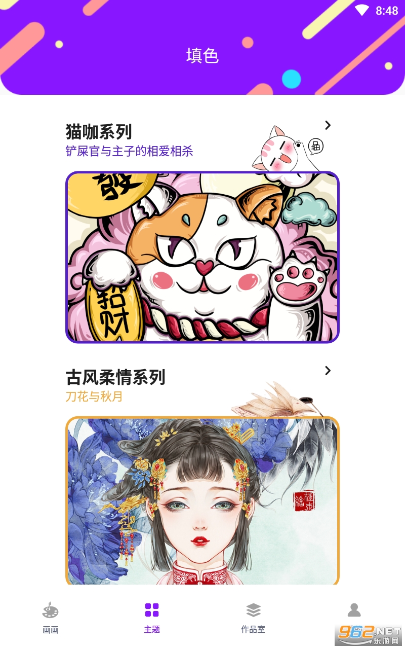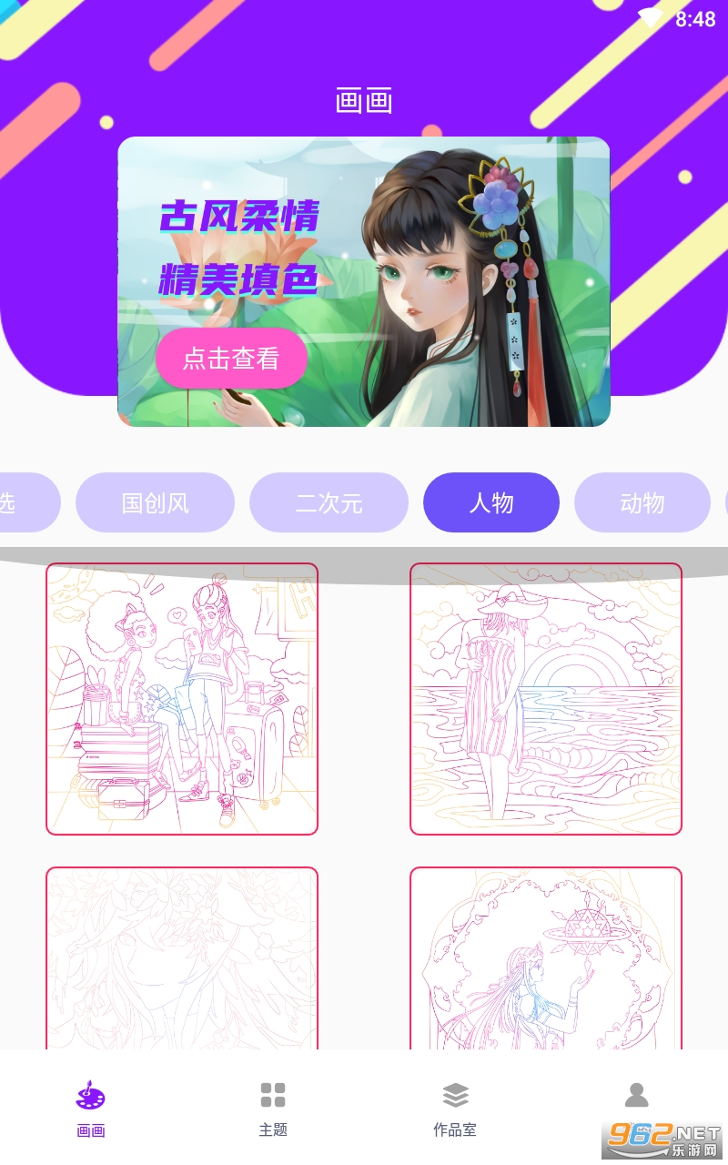 3、在手机上打开绘画填色软件,可以体验到许多不同风格的古画。
