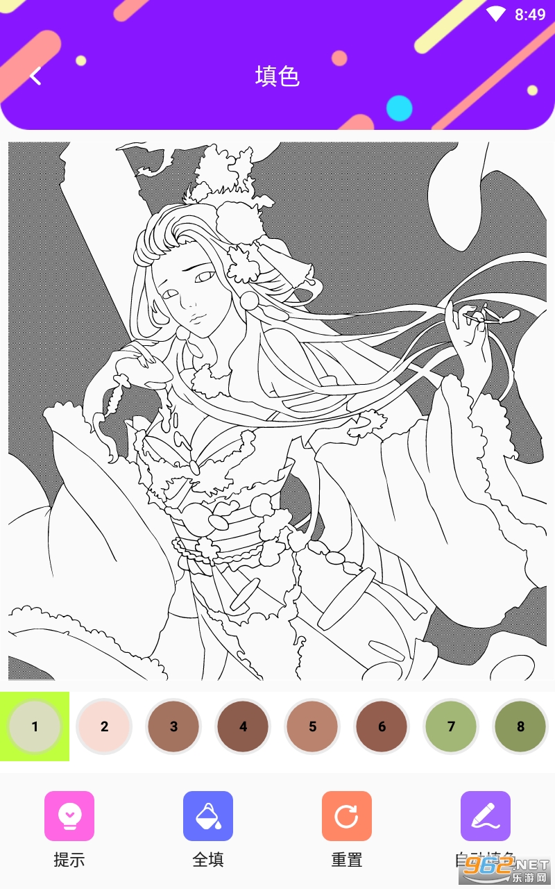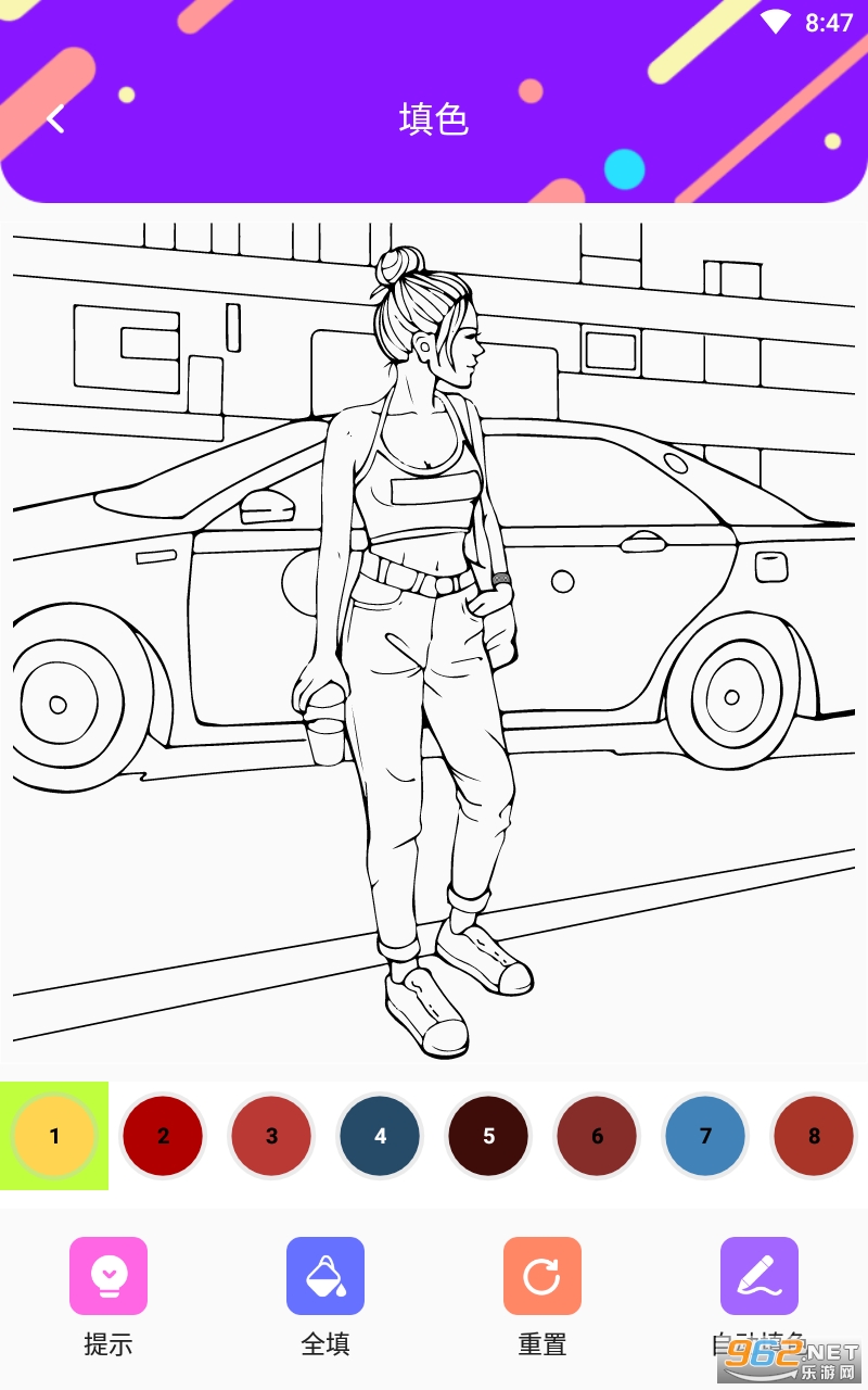 3、着色工具方便定位小色块。画完一个色号后,调色板会显示上色完成,一个杰作就诞生了。