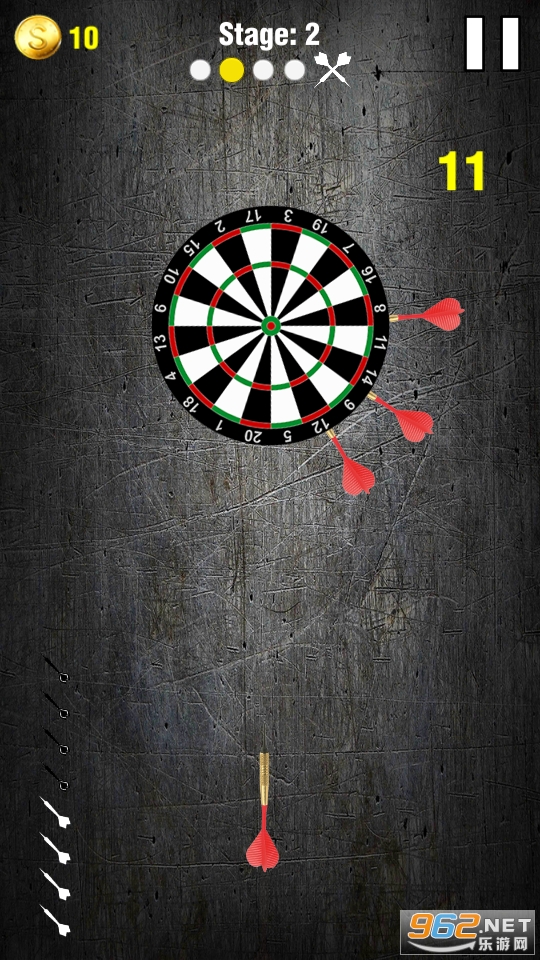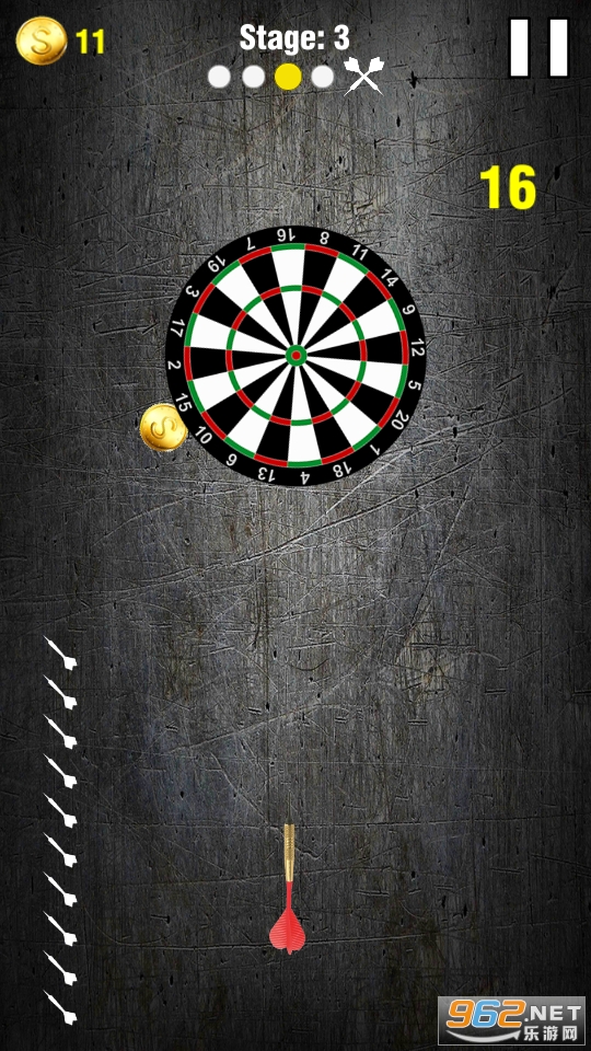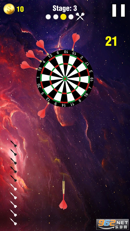 超级飞镖击中是一款新游戏,你可以击中飞镖并打破棋盘。这不是飞镖棋盘游戏,你只需在不同的飞镖之间切换。在每个关卡中,屏幕上显示的省道总数,要完成关卡,您需要将所有省道打到棋盘上。要小心,不要在同一位置打两个省道,否则若你们同时打两个省道,那个么关卡就会失败。这个飞镖命中游戏非常有趣,我们收集不同的飞镖和棋盘集合,新的棋盘将逐级更换,你可以从商店选择不同的飞镖集合。使用不同的飞镖获得更好的体验,完成所有令人兴奋的关卡,享受超级飞镖命中游戏。
