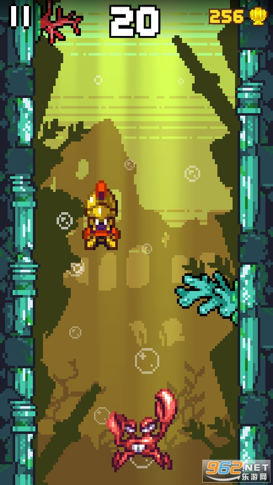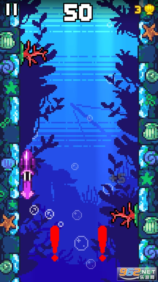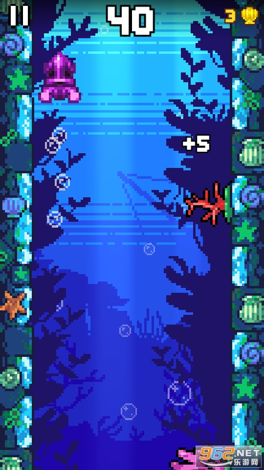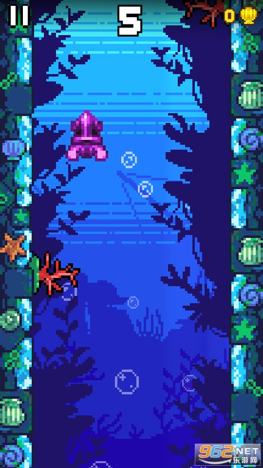 非常有趣的一款像素风格的冒险游戏,控制好小乌贼在海里进行冒险,躲避好所有的障碍物,尽量的走的更远,超多不同的皮肤和场景等你来体验,玩起来很过瘾!