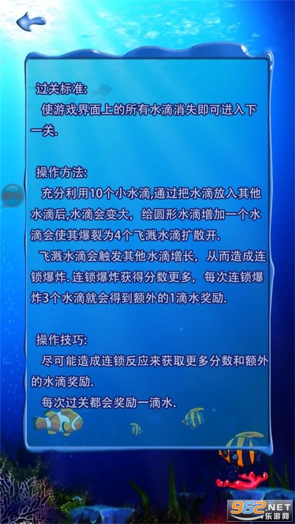 1、尽可能造成连锁反应来获取更多分数和额外的水滴奖励。