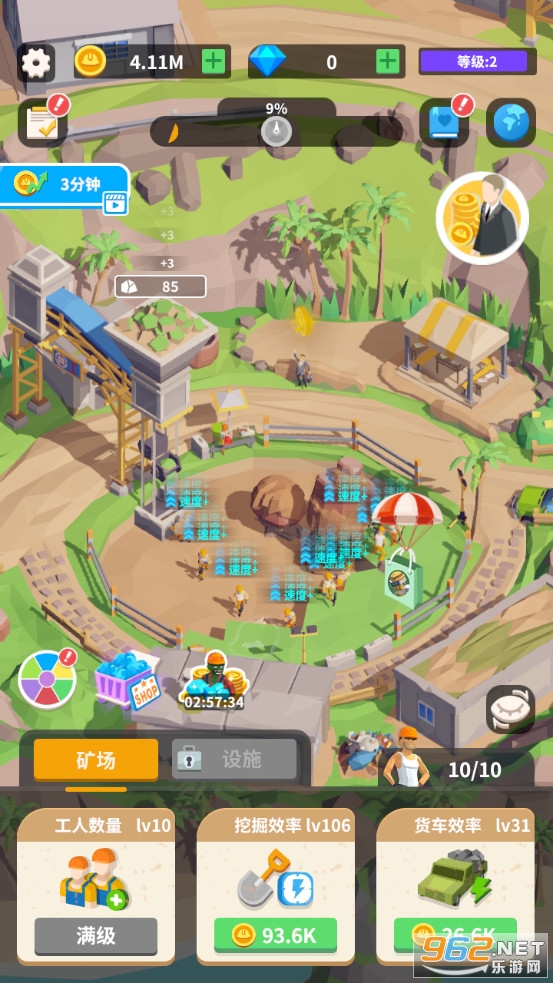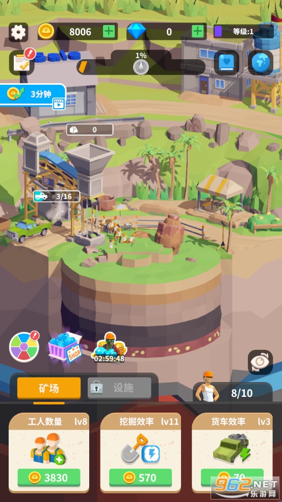 通过在适当的时间出售黄金和钻石矿石来获利,并升级挖掘工具以加快挖掘速度