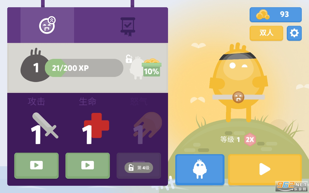 随着等级提升,强化和培养蛋蛋的三种能力。收集金币,还能解锁蛋蛋从呆萌到狂暴的华丽造型。