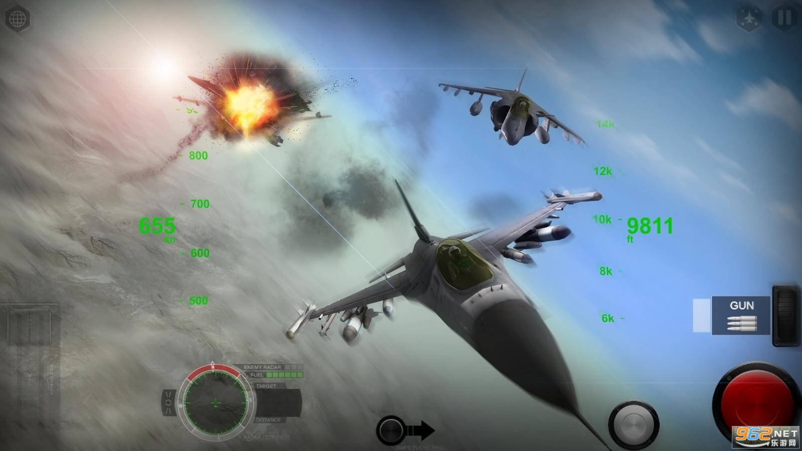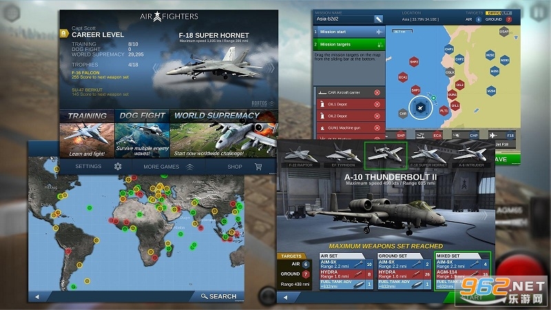 《模拟空战高级版安卓版》是一款非常好玩给力的飞行射击游戏,简单的游戏玩法,轻松的游戏体验,这里能为玩家体验最刺激的空战游戏乐趣和体验,操作简单,玩法轻松,给你最好最棒的游戏乐趣,感兴趣的朋友欢迎来962下载体验试试吧!