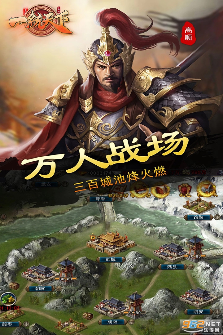 全景即时国战24小时开放,三百余名城关隘等你攻打,三国名臣武将为你鞍前马后,百万热血将士助你圆梦三国!文治武功做一代三国名将,屯粮草,升科技,建功勋,打造最强铁血兵团。经典版本玩法的手游神作,熟悉的感觉,不一样的完美体验!乱世三国谁主沉浮?豪情壮志何处挥洒?风起云涌,跟着《一统天下》穿越成为一方霸主!不一样的三国志,唯一的万人国战!现在起,叱咤风云,独霸三国!