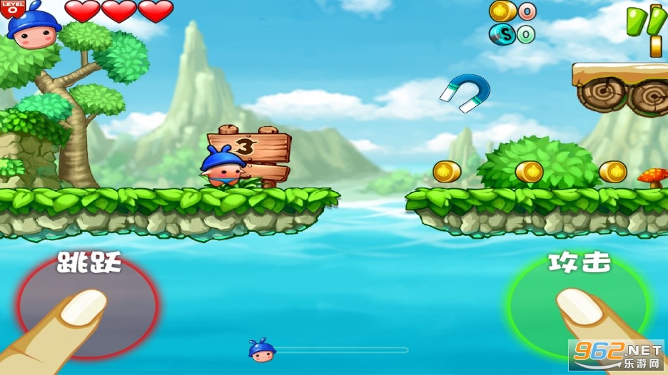 《嘟嘟向前冲2》是一款经典萌系的横版闯关游戏,可爱的卡通画风,欢快的背景音乐,当然大家如果角色背景音乐很吵也可以选择关闭掉。点击屏幕左侧跳跃按钮,帮助嘟嘟躲避危险障碍物,有时候还需要跳跃到另外一个平台上,同时大家还能点击屏幕右侧按钮对关卡中随机刷新的小怪进行攻击。